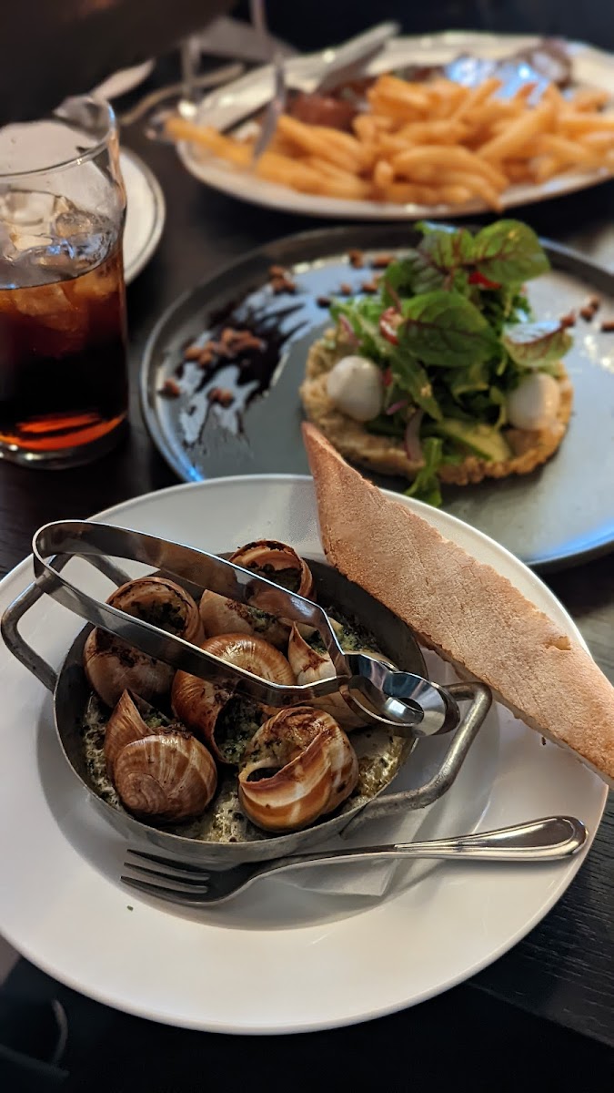 One of the standout features of Cookhouse Baltimore is its diverse selection of signature dishes. If you're in the mood for something bold, the Tiki Without the Skull and Saffron cocktail offers a refreshing twist on tropical drinks, making it the perfect pairing for a night out with friends. For those who love steak, the Steak Frites is a must-try. This dish features perfectly cooked steak paired with crispy fries, a classic French combination that never fails to impress. If you're a fan of seafood, the Pulpo (octopus) is beautifully grilled, offering rich flavor and a tender texture that will surely satisfy. For a unique French delicacy, the Escargot served at Cookhouse Baltimore is an exquisite treat, complemented by flavorful garlic butter. Finally, the Santorini Salad is a refreshing Mediterranean option packed with fresh vegetables, olives, and a delicious dressing-a perfect choice for lighter fare.